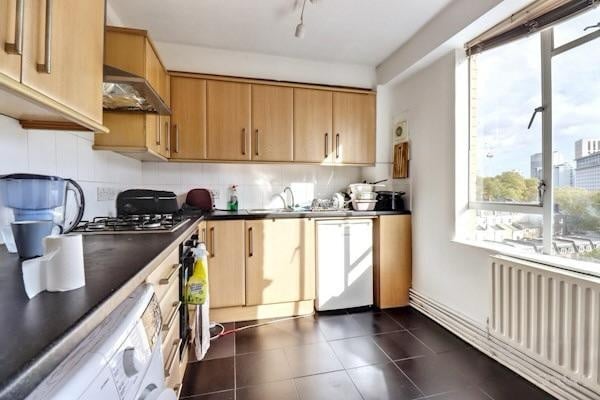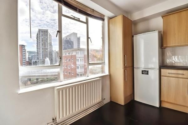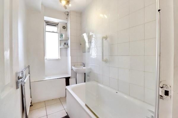 Set within a well-maintained purpose-built block, the apartment boasts a generous living area with large windows that flood the space with natural light. The home features a separate contemporary kitchen, two well-proportioned double bedrooms, and a fully tiled, modern bathroom — an excellent choice for professionals, sharers, or a small family.